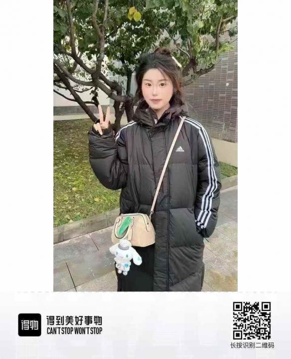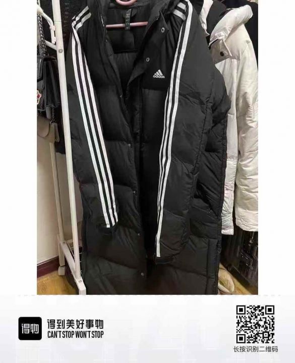 得物下架!仅有50件啊迪达斯长款男女同款白鸭绒羽绒服...