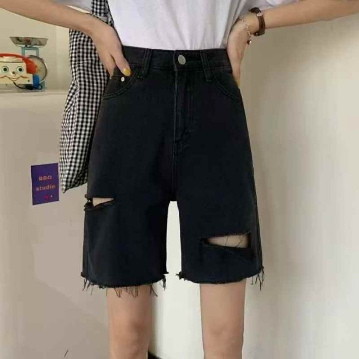 黑色破洞牛仔短裤女夏新款五分裤高腰直筒chic港味宽松阔腿裤42条全清8.8元...