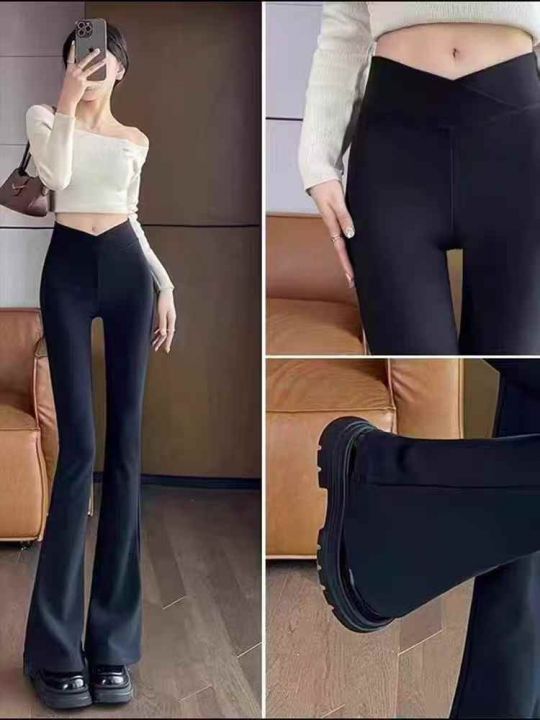 ① 辣妹交叉v腰弹力提臀开叉微喇裤!高垂感,独立包装...