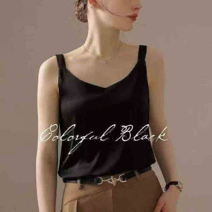 全清价4.6元时尚百搭V领吊带背心真丝缎面内搭打底,独立包装,整款多色(黑...