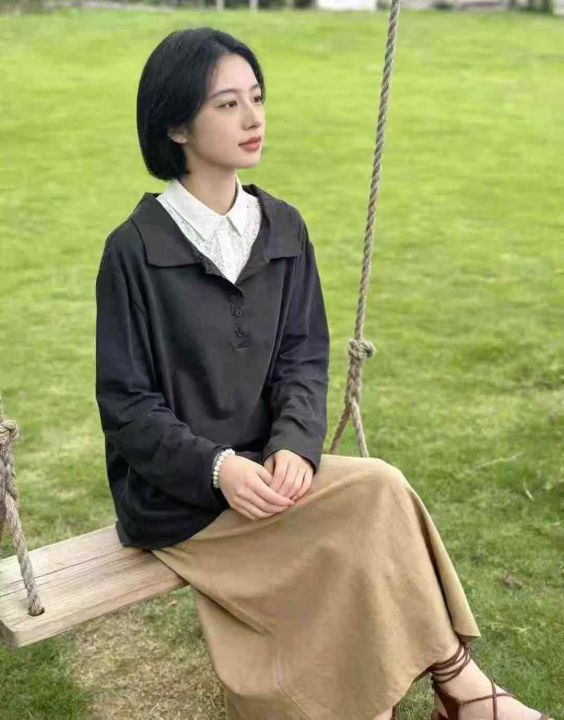 舒适弹力长袖薄款衬衣女外穿时尚简约宽松显瘦POLO领套头上衣,数量1960件,码数s-4xl,独立包装,全清4.8元