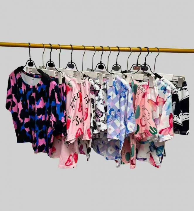 时尚洋气双短印花成人两件套,小整款花型图案多,品质好,精美拉链包装,码...