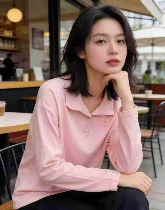 春秋新款洋气减龄百搭翻领POLO上衣简约设计感纯色长袖t恤衫,数量1740件,码数s-2xl,独立包装,全清4.8元
