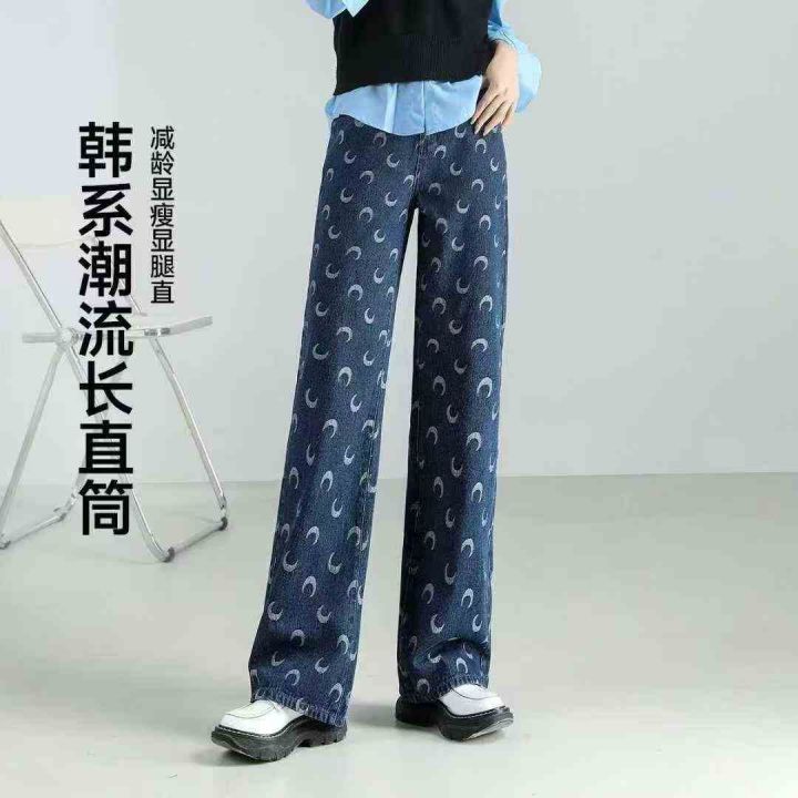 茵曼秋季新款爆款印花设计感牛仔裤洋气直筒阔腿宽松休闲裤,独立包装,S -2 xL码,3 90件左右,全清12.8块,分货加一