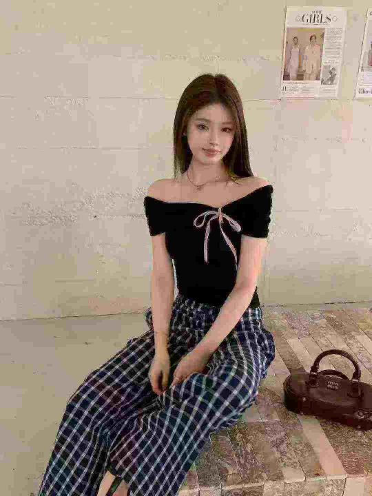 甜欲棉质辣妹一字领上衣599件7.8面料柔软有弹力,绑带...