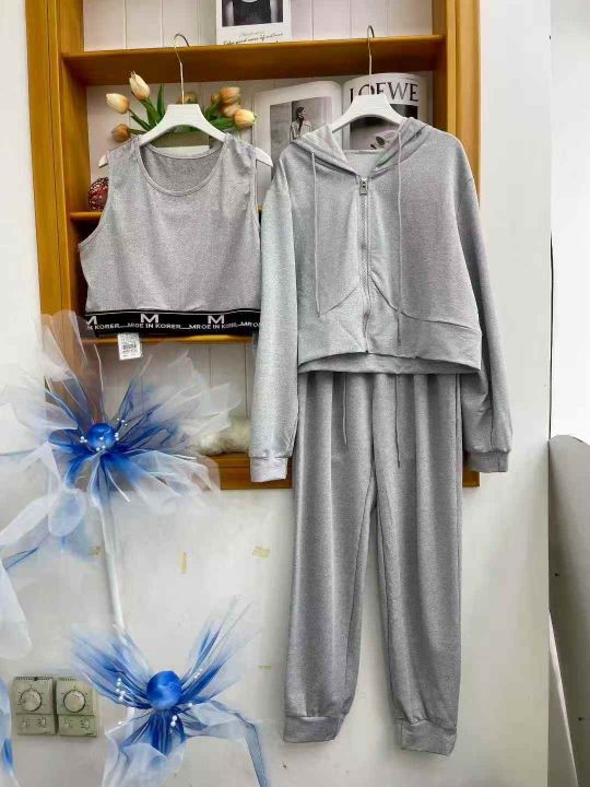 ① 时尚休闲女款开衫连帽三件套装!版型宽松,款式漂亮,独立包装,码数XL-3XL,数量130套左右,全清13.8元