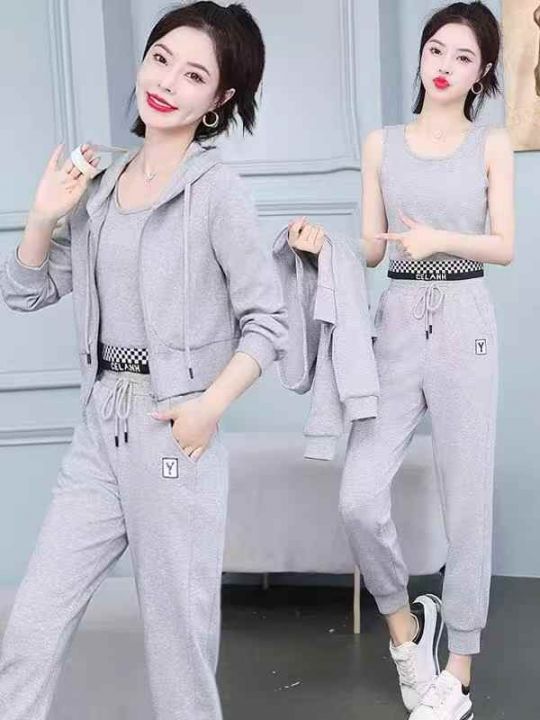 ① 时尚休闲女款开衫连帽三件套装!版型宽松,款式漂...