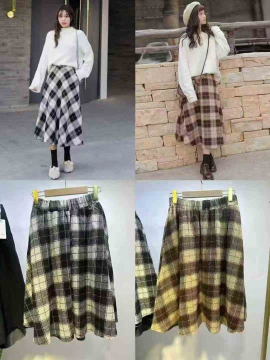 秋冬毛呢格子裙半身高腰a字裙半身长裙冬季裙,码数S-X...