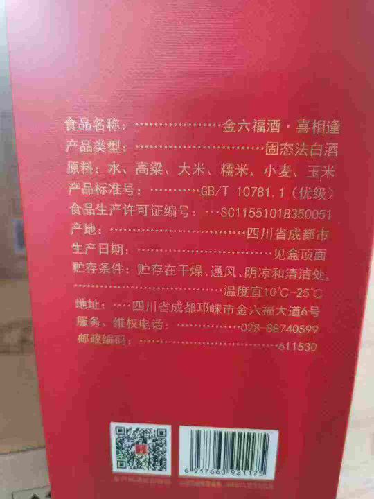 原价 1800 元一箱的金六福白酒,10箱起发180元,一箱...
