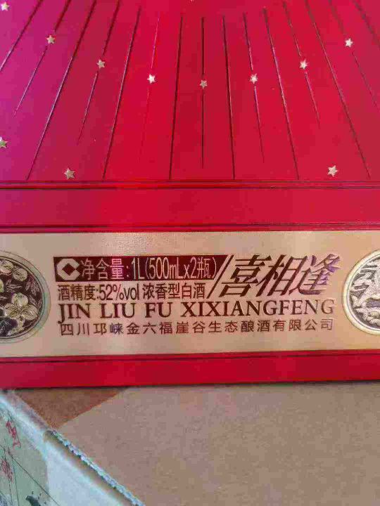 原价 1800 元一箱的金六福白酒,10箱起发180元,一箱起发190元!一箱4 瓶,52度浓香型白酒,一箱2提,一提2瓶,优级纯粮酒,。 货号:29195