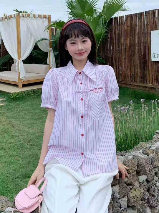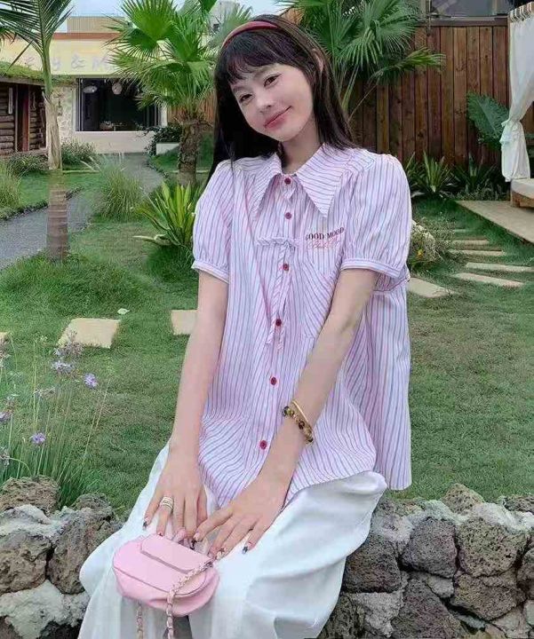 韩系学院风短袖衬衫101件7.9,Polo领,泡泡袖,后领包...