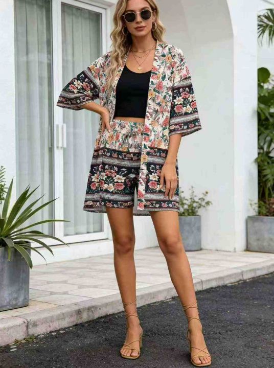 夏季新款品牌外贸原单美式宽松华衬衣短裤2件套套装,独立包装,可穿120--16...