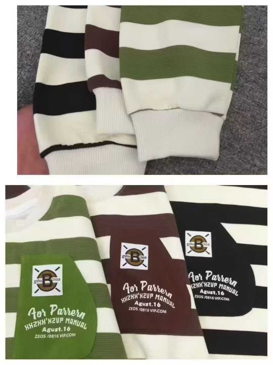 天猫在售品牌高品质条纹童装卫衣 数量100件,尺码110--160 整款三个色 面料厚实 质量很好 独立包装带吊牌 大货干净整洁!