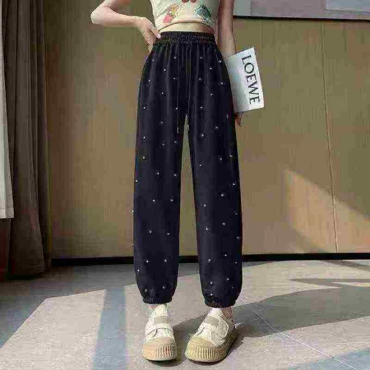 韩系重工镶钻满天星加绒束脚卫裤580件,秋冬清仓9.9,分货11.8,