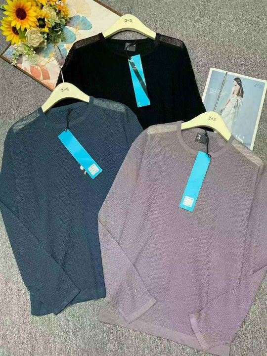 品牌原单男士宽松净版简约冰丝针织长袖,独立包装带吊...