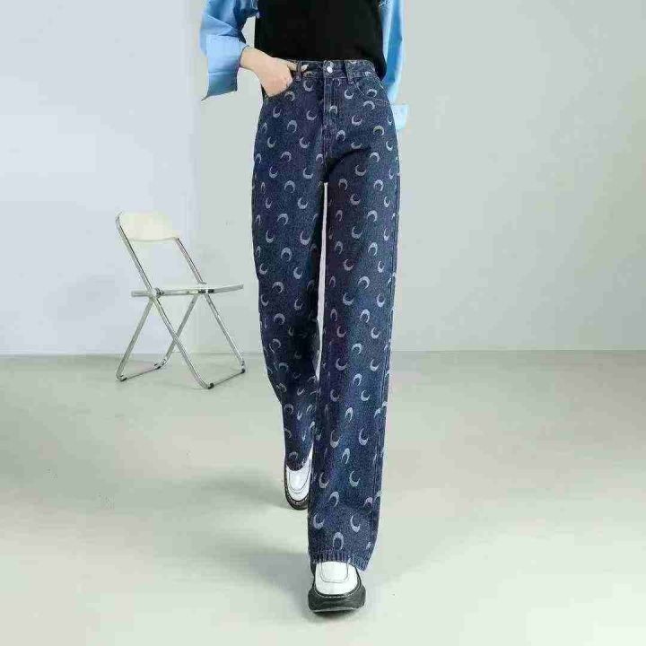 茵曼秋季新款爆款印花设计感牛仔裤洋气直筒阔腿宽松休闲裤,独立包装,S -...