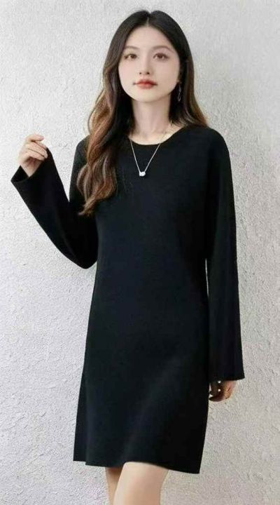 秋冬新款净版简约宽松百搭针织毛衣连衣裙,独立包装,...
