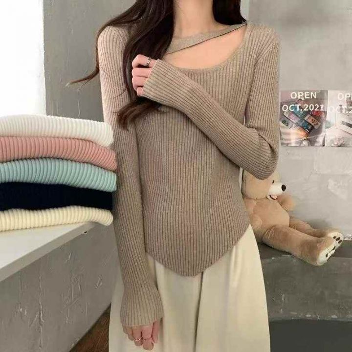 春秋新款网红设计感小众不规则洋气弹力修身显瘦坑条包芯纱套头毛衣,独立包装,均码面料软糯舒适,4200件,全清6.9元超低价秒杀!分货加一!