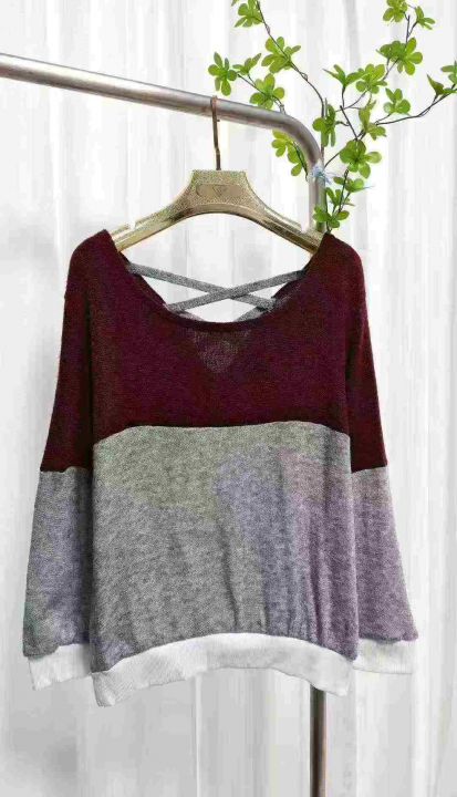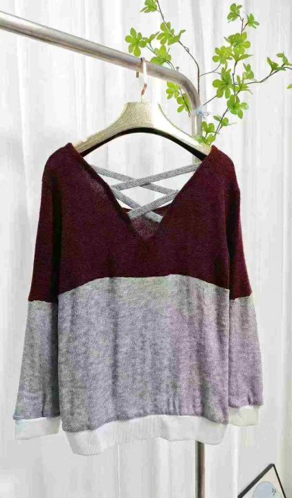 外贸针织套头拼色毛衣