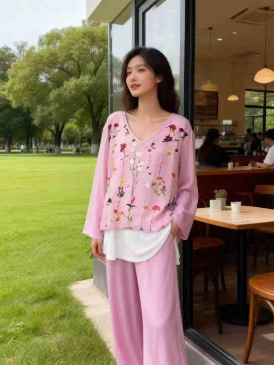 ① 时尚休闲长袖上衣吊带两件套!版型宽松,独立包装...