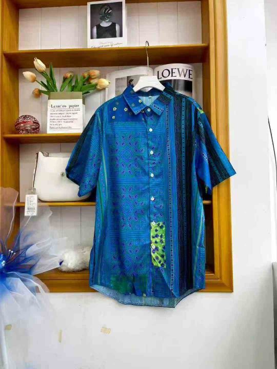 ① 夏季新款美式复古男女同款拼色设计短袖衬衣!版型...