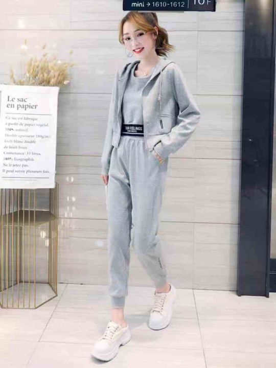 ① 时尚休闲女款开衫连帽三件套装!版型宽松,款式漂...