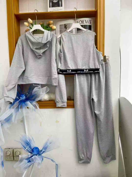 ① 时尚休闲女款开衫连帽三件套装!版型宽松,款式漂亮,独立包装,码数XL-3XL,数量130套左右,全清13.8元