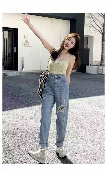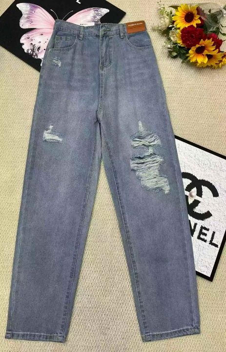 春夏季新款微胖MM破洞设计款牛仔老爹哈伦裤,独立包装...