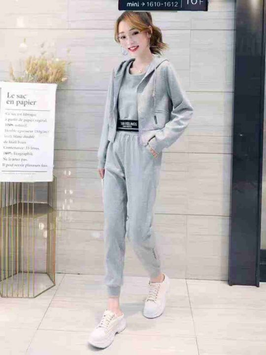 ① 时尚休闲女款开衫连帽三件套装!版型宽松,款式漂...