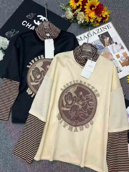 冬季新款加绒大码假两件长袖拼接慵懒风韩版宽松百搭加绒印花打底上衣,独立包装,码数L--4XL码,100件左右,全清4.9元超低价秒杀!