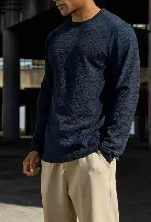 品牌原单男士宽松净版简约冰丝针织长袖,独立包装带吊...
