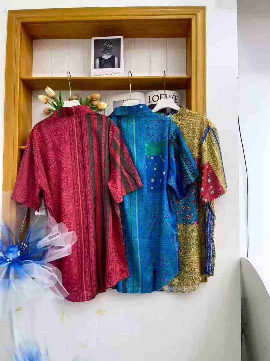 ① 夏季新款美式复古男女同款拼色设计短袖衬衣!版型宽松,整款三色,独立包装,码数M-3XL,数量200件左右,全清5.9元