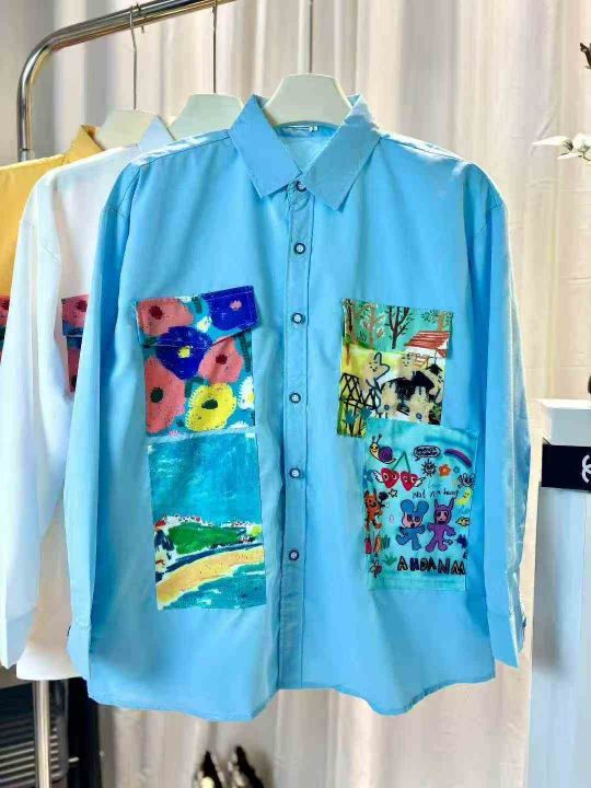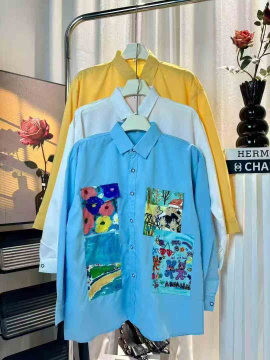 风油画可爱别致花朵小众设计感工装款长袖衬衫上衣 独立包装 码数1-4码 数量200件 全清6.5