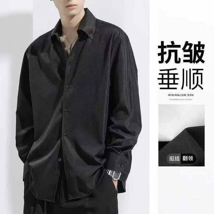 气质轻奢法式垂感抗皱慵懒风休闲宽松男女款长袖衬衫上...