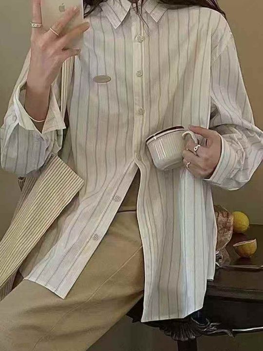 春秋新款叠穿大码宽松休闲显瘦长袖衬衫女法式衬衣设计感小众条纹上衣 独立包装 码数1-4码 数量382件 全清5.9