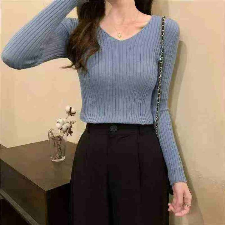秋冬新款净版简约百搭坑条V领包芯纱套头毛衣,独立包装,均码面料软糯舒适...