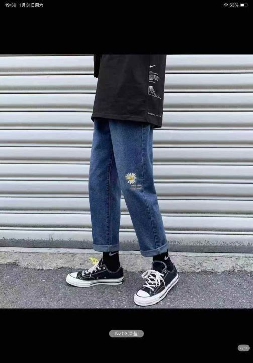 男女同款小雏菊刺绣牛仔裤子直筒阔腿萝卜宽松休闲高腰显瘦百搭牛仔裤1400件,图片系列款,独立包装带吊牌,尺码S~5XL,全清福利价9.8元,分货➕