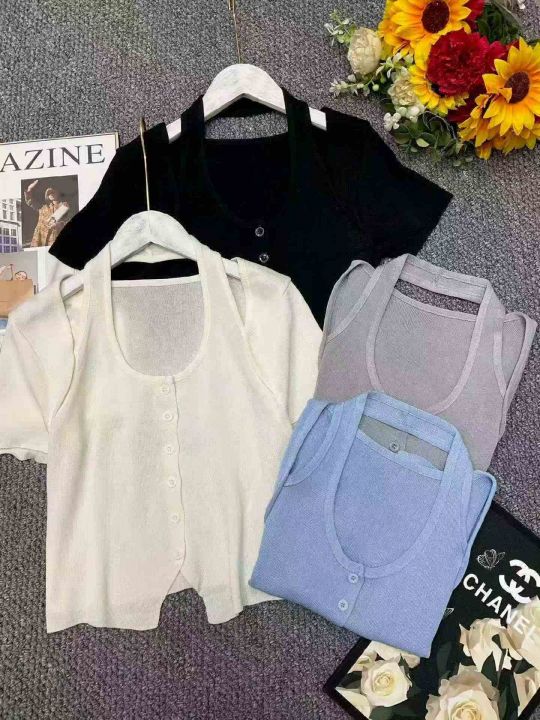 夏季新款弹力修身显瘦辣妹假两件挂脖短款针织短袖,独立包装,均码面料柔软舒适,780件,全清6.9元超低价秒杀!分货加一!白色为主!