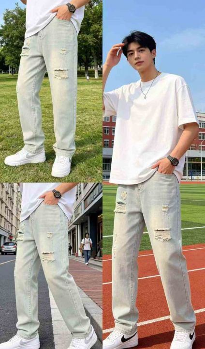 春秋新款复古网红破洞可调节直筒阔腿牛仔裤,独立包装带腰卡,码数S--2XL码...