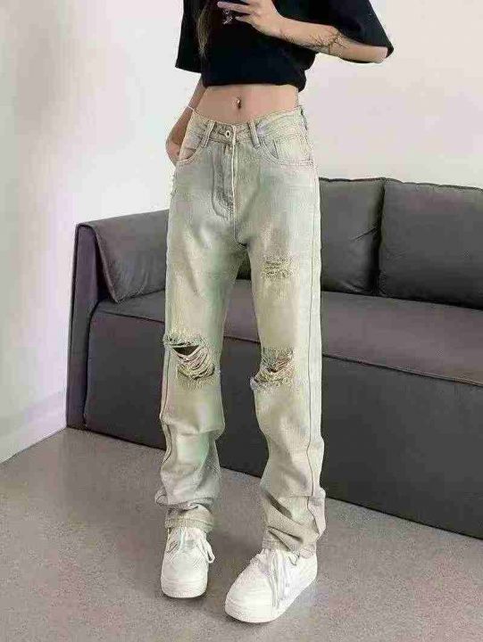 春秋新款高弹力洗水棉网红复古黄泥色牛仔直筒裤,独立包装带吊牌,码数S--3...
