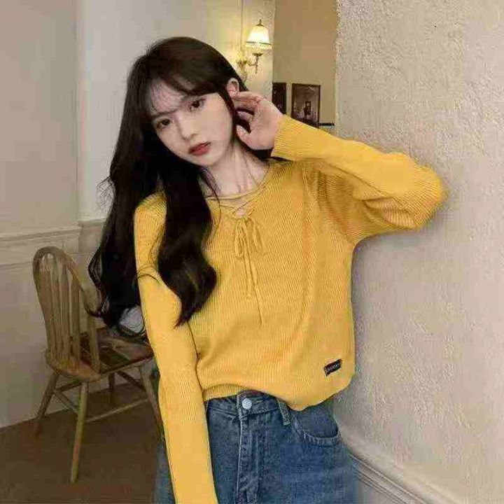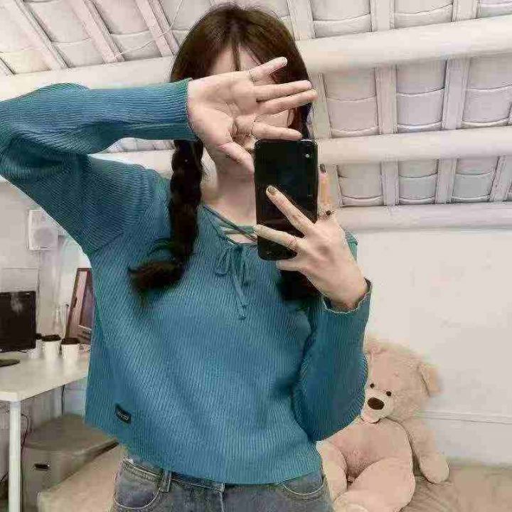 秋季新款韩版宽松设计感小众绑带长袖针织套头毛衣,独立包装,均码面料柔软舒适,100件左右,全清6.9元超低价秒杀!