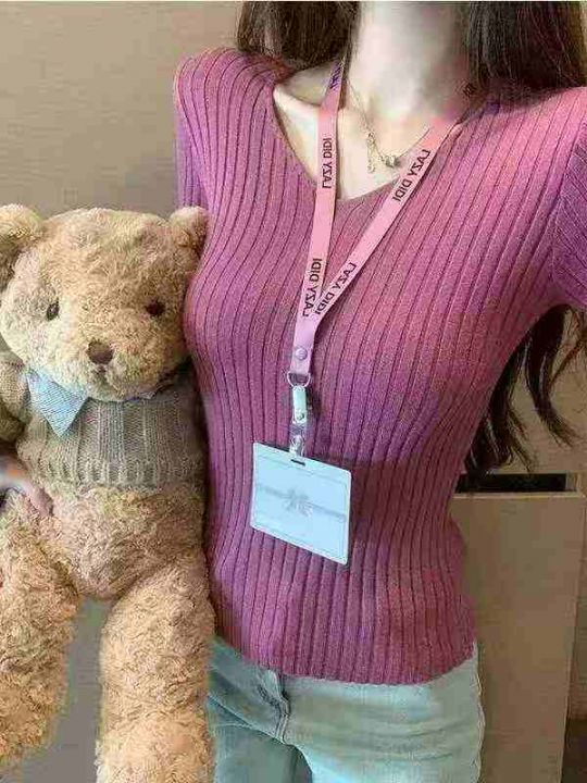 春秋新款薄款法式方领洋气弹力修身显瘦包芯纱套头毛衣,独立包装,均码面料...