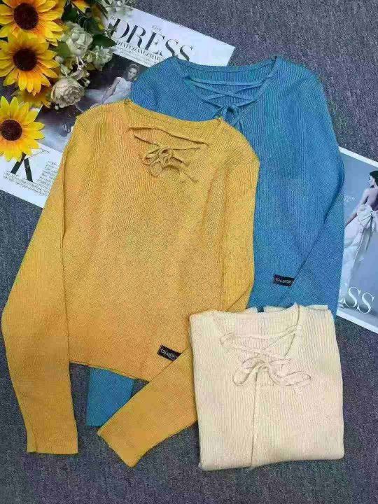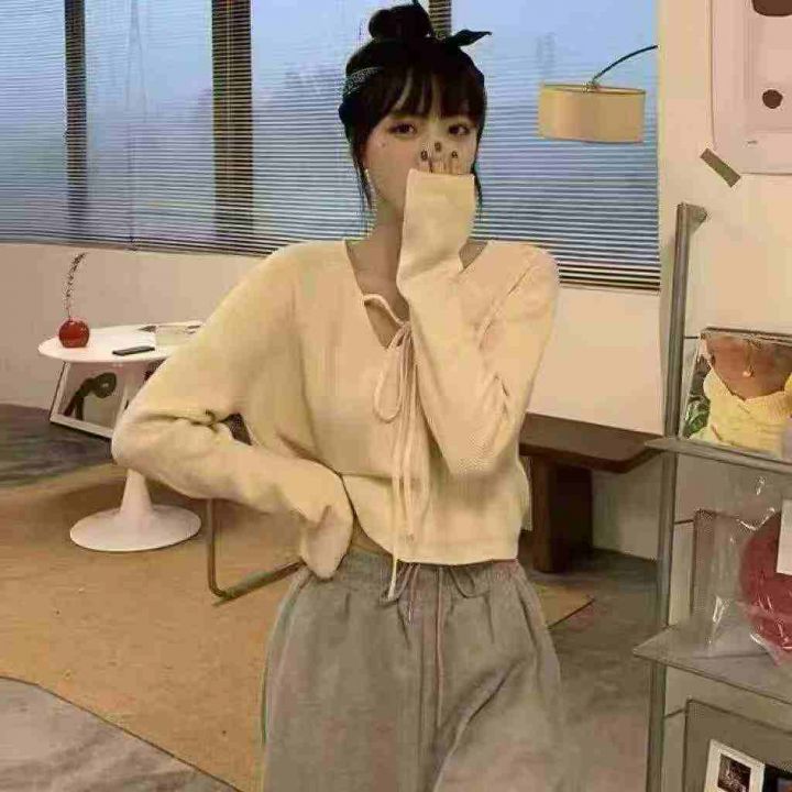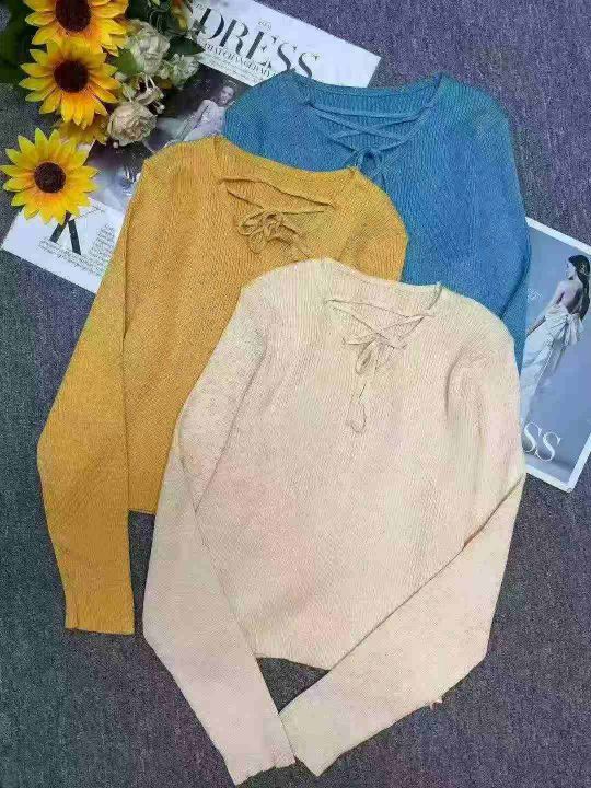 秋季新款韩版宽松设计感小众绑带长袖针织套头毛衣,独立包装,均码面料柔软舒适,100件左右,全清6.9元超低价秒杀!