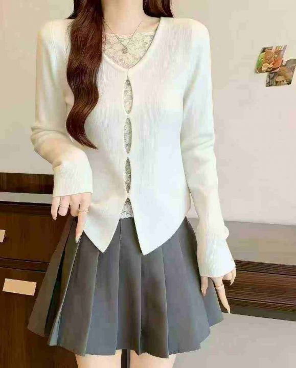 春秋新款纯欲风性感镂空弹力修身显瘦开叉针织套头毛衣...