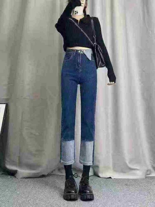 弹力九分直筒牛仔裤女秋季设计感小众烟管阔腿裤500件,独立包装带吊牌,尺...
