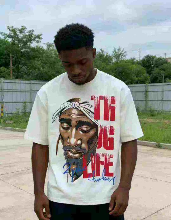 潮牌男士重磅高克重纯棉T桖大面积印花图案3000件,独...
