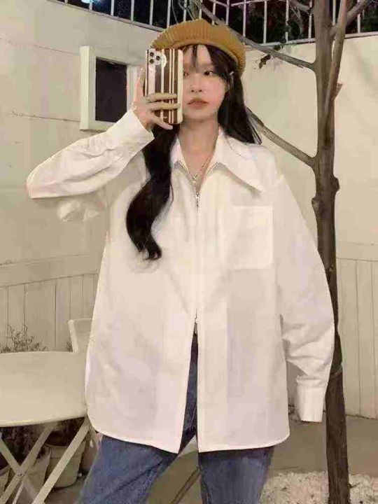 大码法式设计感双拉链POLO领长短袖衬衫女春夏薄款衬衣上衣外套 独立包装 码数1-4码(短袖131件长袖435件)全清5.8 分货加0.5