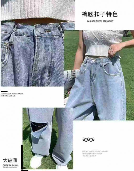 春秋新款复古网红破洞可调节直筒阔腿牛仔裤,独立包装带腰卡,码数S--2XL码,900件左右,全清8.8元超低价秒杀!分货加一!
