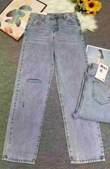 春秋新款复古网红破洞可调节直筒阔腿牛仔裤,独立包装...