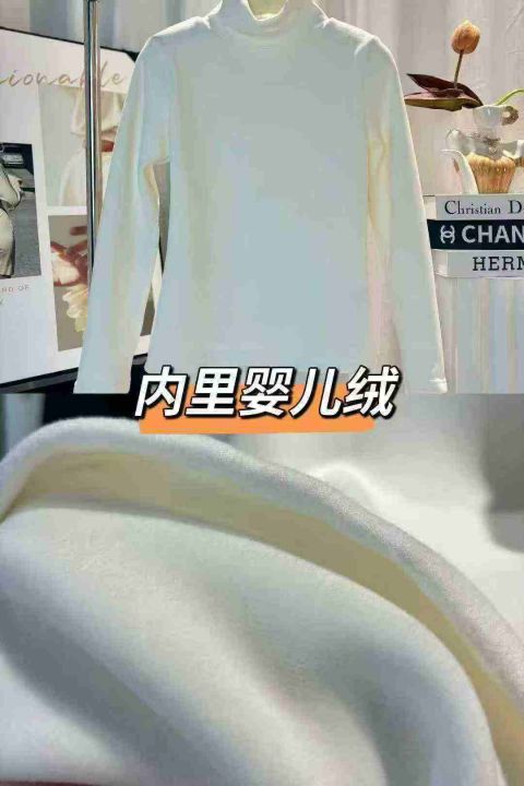 木耳边半高领打底衫女秋冬新款加绒保暖内搭外穿上衣,两个图片款